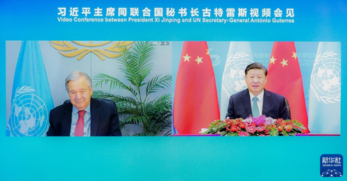 2021年10月25日上午,国家主席习近平在北京人民大会堂以视频方式会见联合国秘书长古特雷斯。
