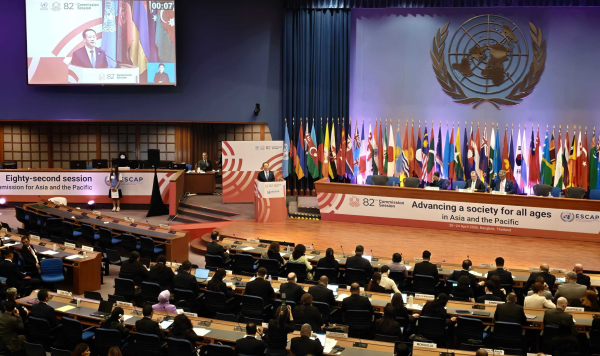 2026年4月20日,外交部副部长马朝旭出席在泰国曼谷举行的联合国亚太经社会第82届年会部长级会议并发表讲话。