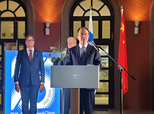 2025年10月15日,外交部部长助理洪磊应邀出席芬兰驻华使馆举办的庆祝中芬建交75周年招待会。