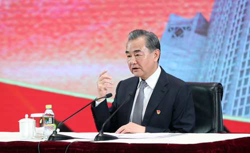 王毅指出,中国共产党历经百年风云变幻考验,仍然保持强大生命力和活力,保持先进性和纯洁性,根本原因就是我们党始终坚守为中国人民谋幸福、为中华民族谋复兴的初心和使命,这是激励中国共产党人不断前进的根本动力。中国特色社会主义进入新时代,外交战线践行初心和使命要体现在坚定政治立场、勇于担当作为和展现世界情怀上,旗帜鲜明地坚持中国共产党领导的中国特色社会主义事业、坚持推动构建新型国际关系和人类命运共同体。