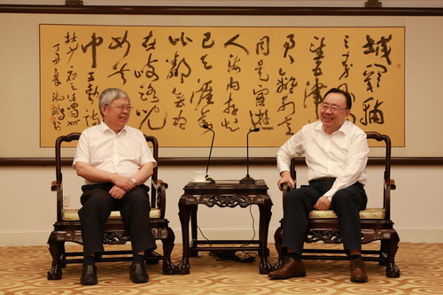 2019年8月15日,外交部党委书记齐玉会见为我部首期“中国外交培训学院国情讲堂”授课的国务院扶贫开发领导小组副组长、扶贫办党组书记、主任刘永富。