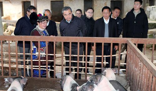 王毅与外交部扶贫办的同志在云南境内长途跋涉,驱车1500多公里,深入乡村山寨,与长年奋战在两县脱贫攻坚第一线的驻村干部和乡村扶贫干部广泛接触,走访了多家建档立卡的深度贫困户,送去了节日问候和慰问品。与贫困户家人围坐在火炉旁促膝交谈,鼓励大家相信党和政府,树立脱贫信心,焕发内生动力,在党和政府的帮助下,用自己的双手创造美好生活。