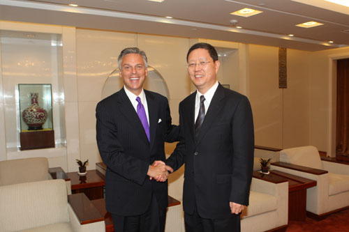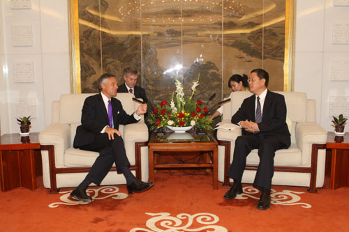2009年8月22日,外交部副部长何亚非会见美国新任驻华大使洪博培。