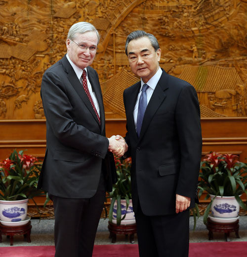 2018年2月26日,外交部长王毅在北京应约会见美前总统国家安全事务助理哈德利。