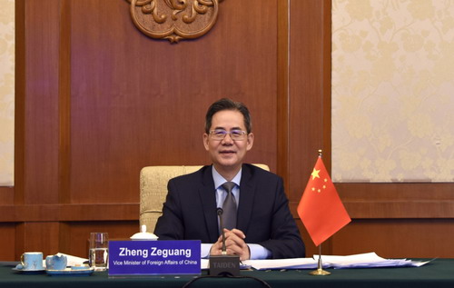 郑泽光介绍了中国统筹疫情防控和经济社会发展工作情况,积极评价岛国在抗疫情、保民生方面取得的重要进展。他强调,中方将继续秉持人类命运共同体理念,同岛国分享防控和救治经验,向有需要的岛国提供支持帮助,落实好将疫苗作为全球公共产品的郑重承诺,助力各岛国的疫情防控和经济复苏。他表示,中方将在疫情防控常态化背景下,同岛国建设好人员往来的“快捷通道”和货物运输的“绿色通道”,维护产业链供应链稳定畅通。郑泽光还向各国通报了下阶段中方在疫苗供应、抗疫合作基金、债务暂缓偿付、电子商务、人员培训、地方合作等领域同岛国加强合作的建议。