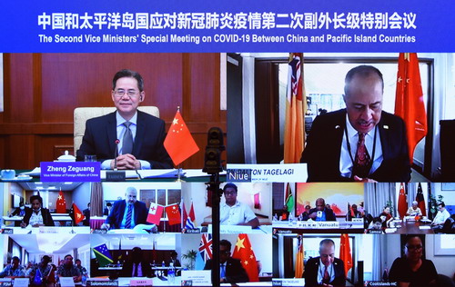 2020年11月30日,中国—太平洋岛国应对新冠肺炎疫情第二次副外长级特别会议以视频方式举行。中国外交部副部长郑泽光和所罗门群岛外交外贸部长马内莱共同主持会议。纽埃总理兼外长塔格拉吉出席并致辞。中国以及斐济、萨摩亚、巴布亚新几内亚、瓦努阿图、密克罗尼西亚联邦、库克群岛、汤加、纽埃、所罗门群岛、基里巴斯等10个建交太平洋岛国代表与会。