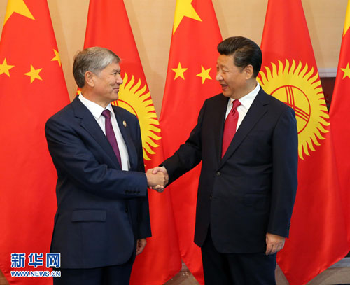 习近平欢迎阿塔姆巴耶夫来华出席中国人民抗日战争暨世界反法西斯战争胜利70周年纪念活动,吉尔吉斯斯坦人民对中国人民抗日战争提供了宝贵支持。习近平指出,去年我们在上海和杜尚别达成的一系列重要共识正得到积极落实,中吉战略伙伴关系进一步巩固和充实,更加充满活力。我同意双方制定的《中华人民共和国和吉尔吉斯共和国2015年至2025年合作纲要》。双方要继续深化经济和安全合作,推动中吉关系不断提档增速升级。经济合作要做好顶层设计和战略对接,稳步推进能源、交通、农业等领域大项目建设。中方愿在丝绸之路经济带框架内积极参与吉尔吉斯斯坦国家稳定和发展战略中的重大合作项目,同吉方携手共建中国-中亚-西亚经济走廊。