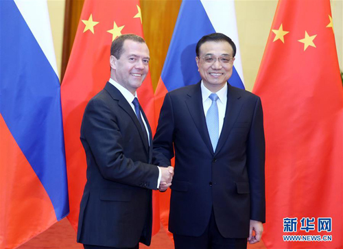李克强表示,在国际政治、经济、金融环境复杂多变,大宗商品价格低迷,各主要经济体下行压力加大的背景下,中方愿同俄方共同努力,发挥相互投资的引擎作用,把产能和装备制造合作作为新的增长点,落实好重点合作项目,促进双向投资便利化,提高投资活力,深化能源资源、财政金融、航空航天、农业、军技等领域合作,为中俄务实合作提质增量。开展石油勘探、开发、炼化上中下游一体化合作。对接中方创新驱动发展,大众创业、万众创新,“中国制造2025”和俄方“创新2020战略”,大力发展高科技和创新合作,早日启动中俄创新对话,探索建立创新合作新模式。深化中俄人文交流,在成功举办中俄青年友好交流年基础上,筹划和落实好中俄媒体交流年各项活动。