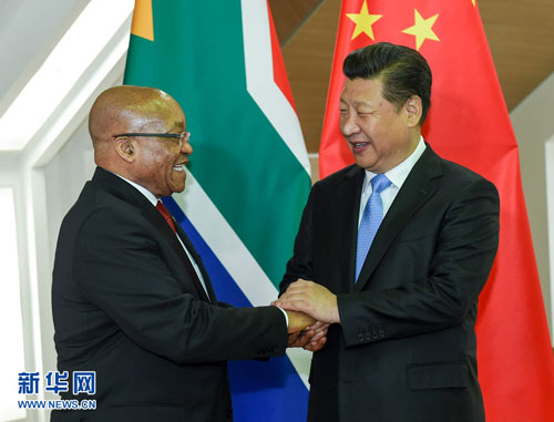 习近平表示,过去两年,我同总统先生成功实现互访,就加强两国合作作出长远规划和全面部署。中南关系保持强劲发展势头,正处于历史最好时期。双方在一系列重要领域的战略合作卓有成效,极大丰富了中南全面战略伙伴关系内涵。中方愿意同南方密切协作,着力推进在开发海洋经济、产业产能、经济特区、能源、金融等重点领域互利合作,将中南友好和政治互信转化为实实在在的合作成果,更好造福两国人民。中南两国在重大国际问题上保持着良好沟通和协调,我对此感到高兴。中方也愿加强同南非在金砖国家框架内合作,为金砖国家建设添砖加瓦,推动金砖国家在国际事务中发挥积极建设性作用,维护新兴市场国家和发展中国家共同利益。