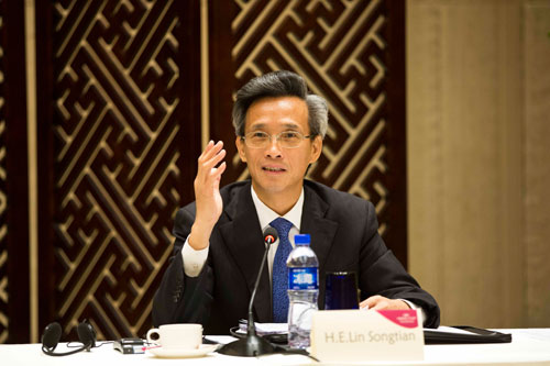 林松添感谢使节们为协调人会议圆满成功所作重要贡献,介绍了中非合作转型升级呈现出的新变化,阐述了共同发展、集约发展、绿色发展、安全发展、开放发展五大中非合作发展理念的内涵,表示中方愿同非方共同秉持五大合作发展理念,确保安全、有序、有效落实峰会成果。