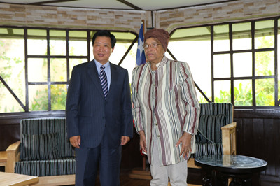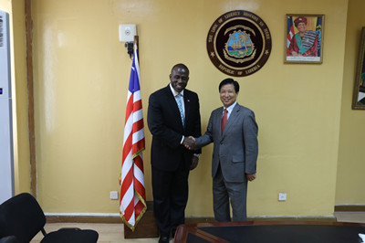 2017年6月25日,正在访问利比里亚的中非合作论坛事务大使周欲晓拜会利总统瑟利夫,利代外长邵尼因和中国驻利比里亚大使张越参加。