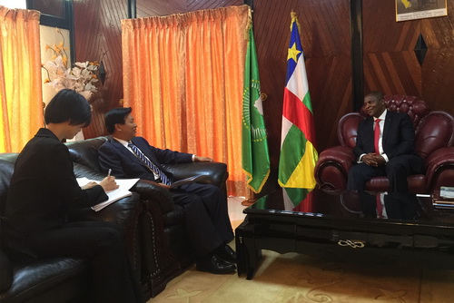 访问期间,周大使还同中非外交部办公厅主任莫洛巴马举行会谈,双方就双边关系和共同关心的国际地区问题交换意见。