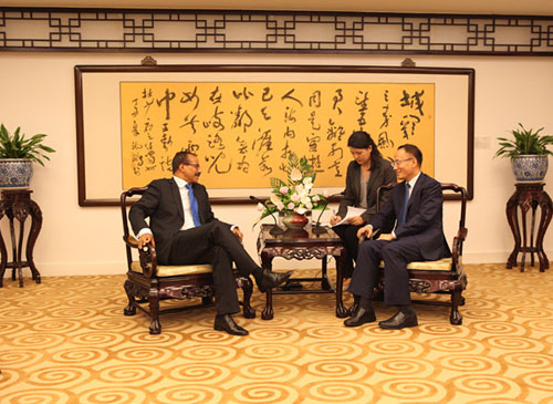 2018年8月20日,外交部部长助理陈晓东会见即将离任的埃塞俄比亚驻华大使伯哈内。