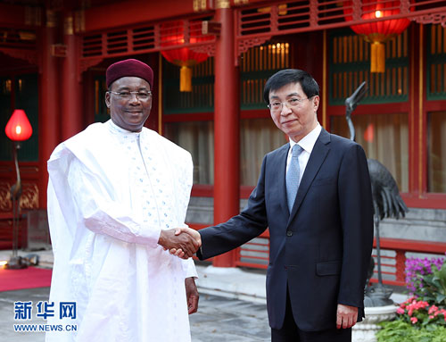 2018年8月31日,中共中央政治局常委、中央书记处书记王沪宁在钓鱼台国宾馆会见尼日尔总统伊素福。