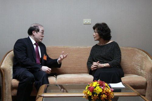 2009年4月27日,正在泰国曼谷出席联合国亚太经社会(ESCAP)第65届会议的刘结一部长助理会见ESCAP执行秘书海泽。双方就当前亚太经济社会发展形势、加强ESCAP作用及促进中国与ESCAP合作等交换了看法。