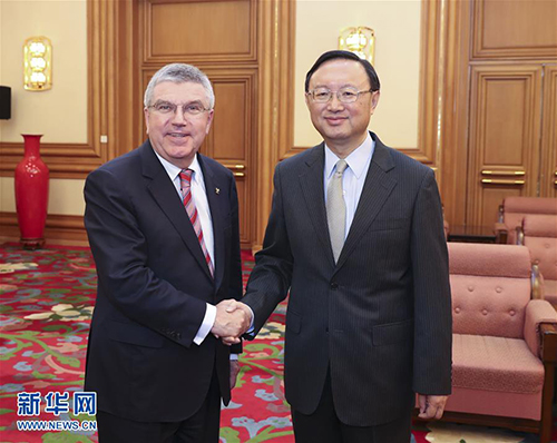 杨洁篪表示,中国同国际奥委会保持着良好合作。习近平主席今年1月对国际奥委会进行历史性访问,将双方关系提升到新高度。希望双方继续深化合作,共同把2022年北京冬奥会办成一届精彩、非凡、卓越的奥运盛会。