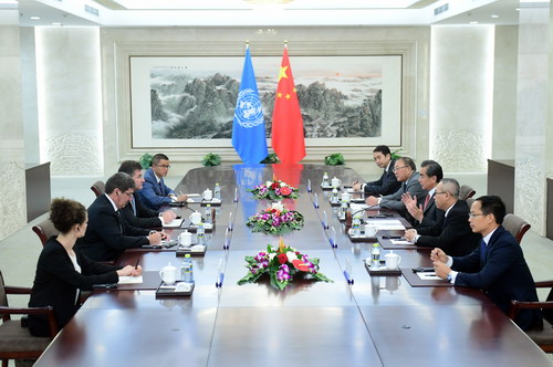 2018年7月3日,国务委员兼外交部长王毅在北京同来华访问的第72届联合国大会主席莱恰克举行会谈。王毅表示,在当前国际形势下,如何坚持、完善和发展多边主义是一个重大的课题。新时代的多边主义应坚持: