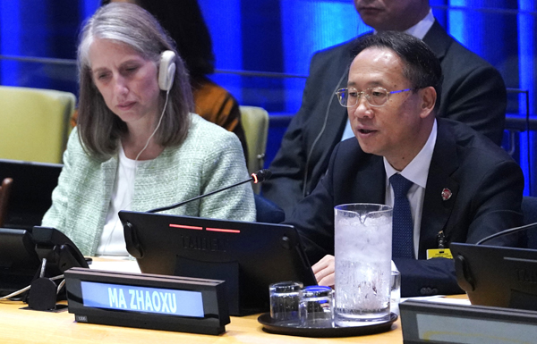 当地时间2025年9月25日,外交部副部长马朝旭在纽约出席联合国全球人工智能治理对话高级别启动会议并发言。