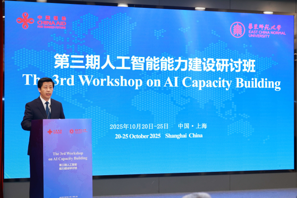 2025年10月20日,外交部人工智能事务协调员孙晓波出席由华东师范大学承办的第三期人工智能能力建设研讨班开班式并致辞。