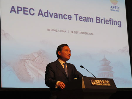 张昆生部长助理欢迎各先遣组来华与中方共同推进各项筹备工作并强调,继2001年中国上海成功举办APEC会议后,时隔13年,中国再次担任APEC会议东道主,凝聚了各方对中国的信任和期待。中方将在APEC会议前举办主题为“加强互联互通伙伴关系”的东道主伙伴对话会,期待借此搭建APEC成员与亚洲非APEC成员合作的桥梁。中方将同与会各方携手努力,确保本届APEC会议和东道主伙伴对话会成功举办。