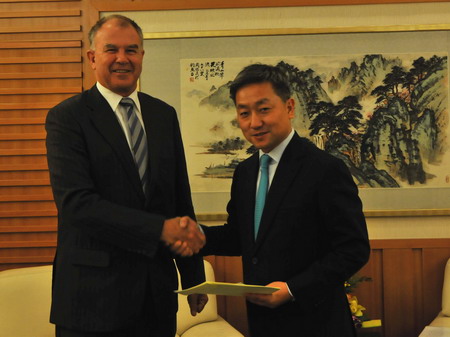 外交部礼宾司副司长张益明接受新西兰新任驻华大使递交国书副本