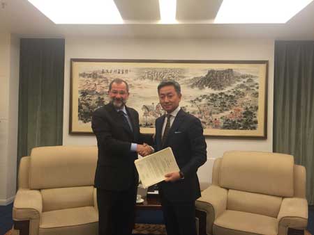 2015年9月25日,外交部礼宾司副司长张益明接受斯洛文尼亚新任驻华大使普雷莫热递交的国书副本。
