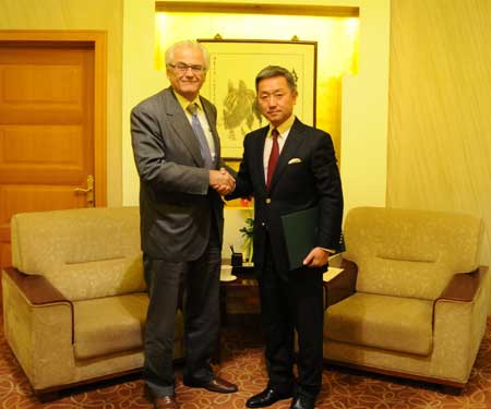2015年10月15日,外交部礼宾司副司长张益明接受巴西新任驻华大使罗伯托·雅瓜里贝递交的国书副本。
