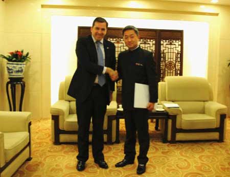 2015年12月2日,外交部礼宾司副司长张益明接受乌拉圭新任驻华大使费尔南多·卢格里斯递交的国书副本。