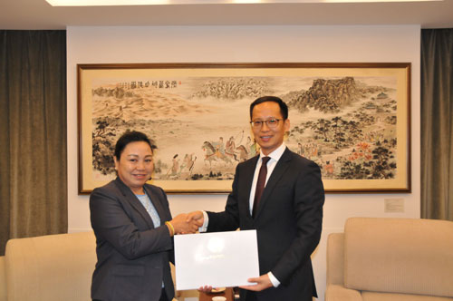 老挝新任驻华大使坎葆递交国书副本