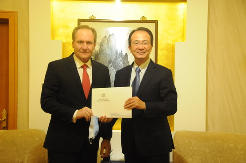 2020年8月25日,外交部礼宾司司长洪磊接受摩尔多瓦新任驻华大使杜米特鲁·贝拉基什递交的国书副本。贝拉基什大使于8月8日抵京。