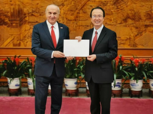2021年10月8日,外交部礼宾司司长洪磊接受墨西哥新任驻华大使施雅德递交的国书副本。施雅德大使于9月9日抵华。