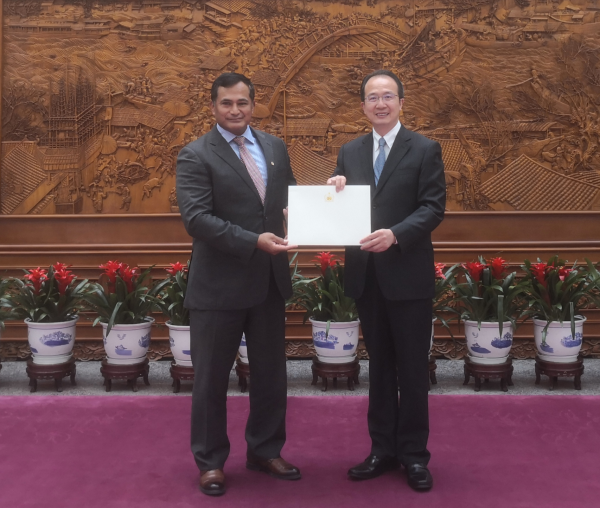 2022年7月18日,外交部礼宾司司长洪磊接受萨摩亚新任驻华大使马里纳递交的国书副本。马里纳大使于7月4日抵华。