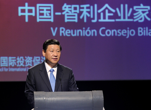 习近平表示,智利在发展与中国的关系上曾经创造多个第一。相信在21世纪第二个十年,中智两国一定会在深化经贸和投资合作方面,创造出更多新的第一,更好地造福两国人民。希望中智两国企业家携起手来,把握发展机遇,深化互利合作,共创中智关系更加美好的明天。