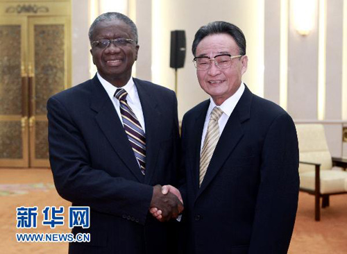 2011年6月14日,全国人大常委会委员长吴邦国在人民大会堂会见了巴巴多斯总理斯图尔特。