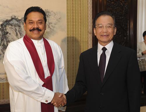 在会见拉贾帕克萨时,温家宝表示,近年来中斯友谊与合作不断深化,给两国人民带来了实实在在的利益,也促进了地区和平与发展。中方愿更多帮助和参与斯里兰卡经济建设,促进两国基础设施的互联互通,扩大贸易投资合作,加强文化交流与人员往来,为双边关系发展注入新的活力。