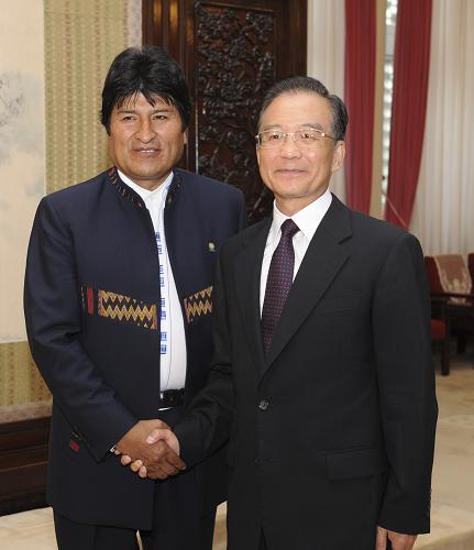 在会见莫拉莱斯时,温家宝表示,中玻有着传统友谊和政治互信,两国经济互补性较强,加强互利合作是双方的共同愿望。中方愿与玻方密切合作,优化双边贸易结构,扩大在矿产资源开发、基础设施建设、科技等领域的合作,促进两国经济建设,特别是增强玻方自我发展能力。