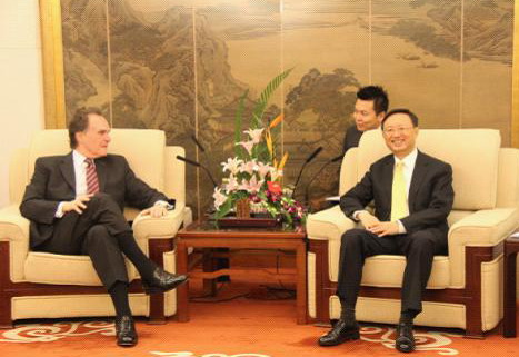 2011年8月25日,杨洁篪部长会见即将离任的秘鲁驻华大使福塞斯,双方就中秘关系等交换意见。