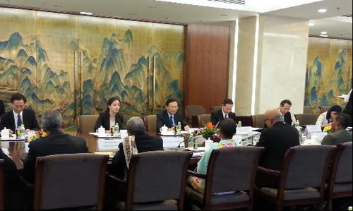 外交部部长助理张昆生及部分加勒比国家驻华使节参加了会见。