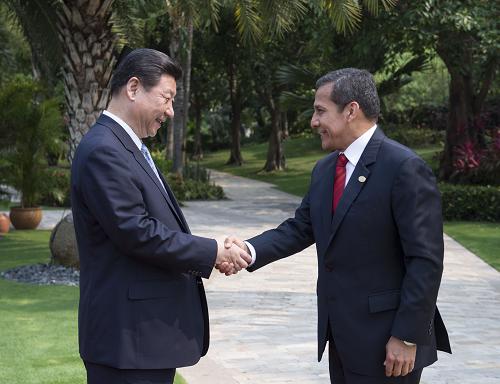 习近平表示,中秘两国相互信任、互利合作,是好朋友、好伙伴。2009年秘鲁在拉美率先同中国签署一揽子自由贸易协定,在拉美起到了很好示范效应。中方对中秘关系良好发展感到满意。我们愿同秘方一道努力,以两国建立全面战略伙伴关系为契机,谱写中秘友好合作关系新篇章。