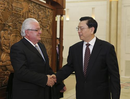 2013年4月10日下午,全国人大常委会委员长张德江在人民大会堂与厄瓜多尔国民代表大会主席科尔德罗举行会谈。