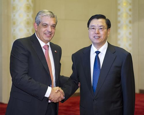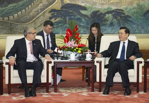 2013年4月28日上午,全国人大常委会委员长张德江在人民大会堂会见了阿根廷众议院议长多明格斯。