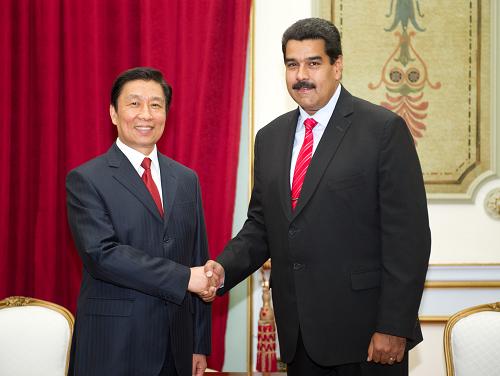 2013年5月13日,正在委内瑞拉进行正式访问的国家副主席李源潮在加拉加斯会见委内瑞拉总统马杜罗。