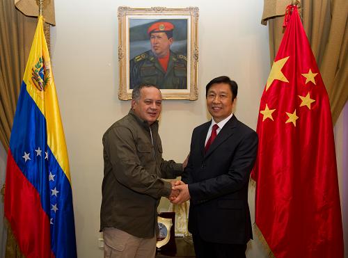 2013年5月13日,正在委内瑞拉进行正式访问的国家副主席李源潮在加拉加斯会见委内瑞拉全国代表大会主席卡韦略。