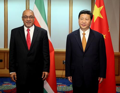 在会见鲍特塞时,习近平表示,苏里南是加勒比地区华人华侨最多的国家,中华文化已成为苏里南多元文化重要组成部分。今年是华人抵达苏里南160周年,双方要好好庆祝,传承传统友好。双方要加强政府、议会、政党交往,在基础设施建设、林业、矿业、石油、水利、民生等领域拓展合作。苏里南将轮值南美洲国家联盟主席,中方愿同苏方一道,推进中拉整体合作。