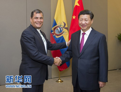 2014年7月16日,国家主席习近平在巴西利亚会见厄瓜多尔总统科雷亚。
