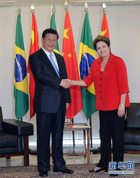 两国元首共同会见了记者。习近平强调,我这次对巴西进行国事访问,是一次加强合作之旅、促进发展之旅、坚定信心之旅。我同罗塞芙总统举行了深入而富有成果的会谈,达成广泛共识,双方还签署了一系列合作文件。这些成果将使中巴合作更加密切,必将有力促进两国发展,同时也坚定了我们对中巴全面战略伙伴关系未来发展的信心。中方愿同巴方一道,以这次访问为契机,增进交流合作,加深战略互信,共创中巴关系更加辉煌灿烂的明天。