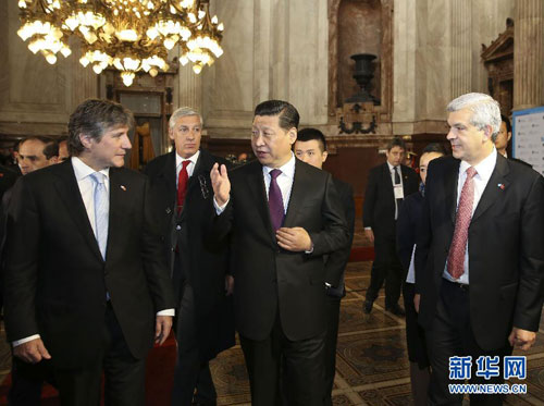 习近平指出,阿根廷国会代表了社会民意,你们支持中阿关系发展,使我们更加坚定了友好合作的决心。近年来,中国全国人大同阿根廷国会保持良好交往,丰富了中阿关系内涵。希望两国立法机关继续加强交流互鉴,为中阿关系发展添砖加瓦。