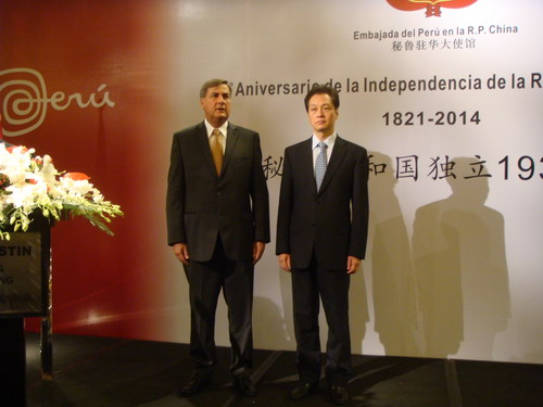 2014年7月25日,外交部副部长王超出席秘鲁驻华使馆举办的秘独立193周年国庆招待会,并与秘驻华使馆临时代办米兰达就中秘关系及共同关心的问题交换了意见。