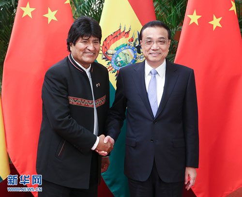 李克强指出,中方愿同玻方抓住两国关系发展的新机遇,推动经贸、旅游、人文合作,增加进口玻方有竞争力、高质量的产品。加强产能合作,深化资源开发利用,推动玻工业化进程。中玻合作是南南合作的组成部分,中方愿同包括玻方在内的拉美国家一道,维护发展中国家共同利益,促进世界和平、稳定与发展。