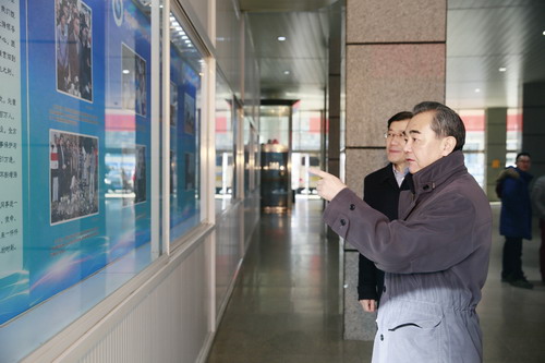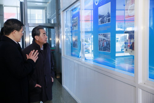 2017年12月5日,外交部长王毅在外交部参观领事保护工作图片展。